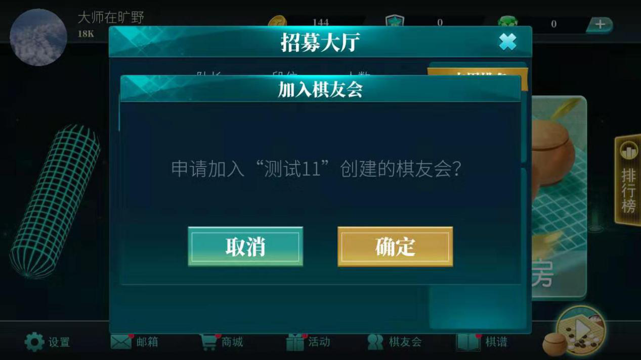 系统会问玩家想要加入由某某创建的棋友会吗?玩家点击“确定”,系统会让玩家加入棋友会。